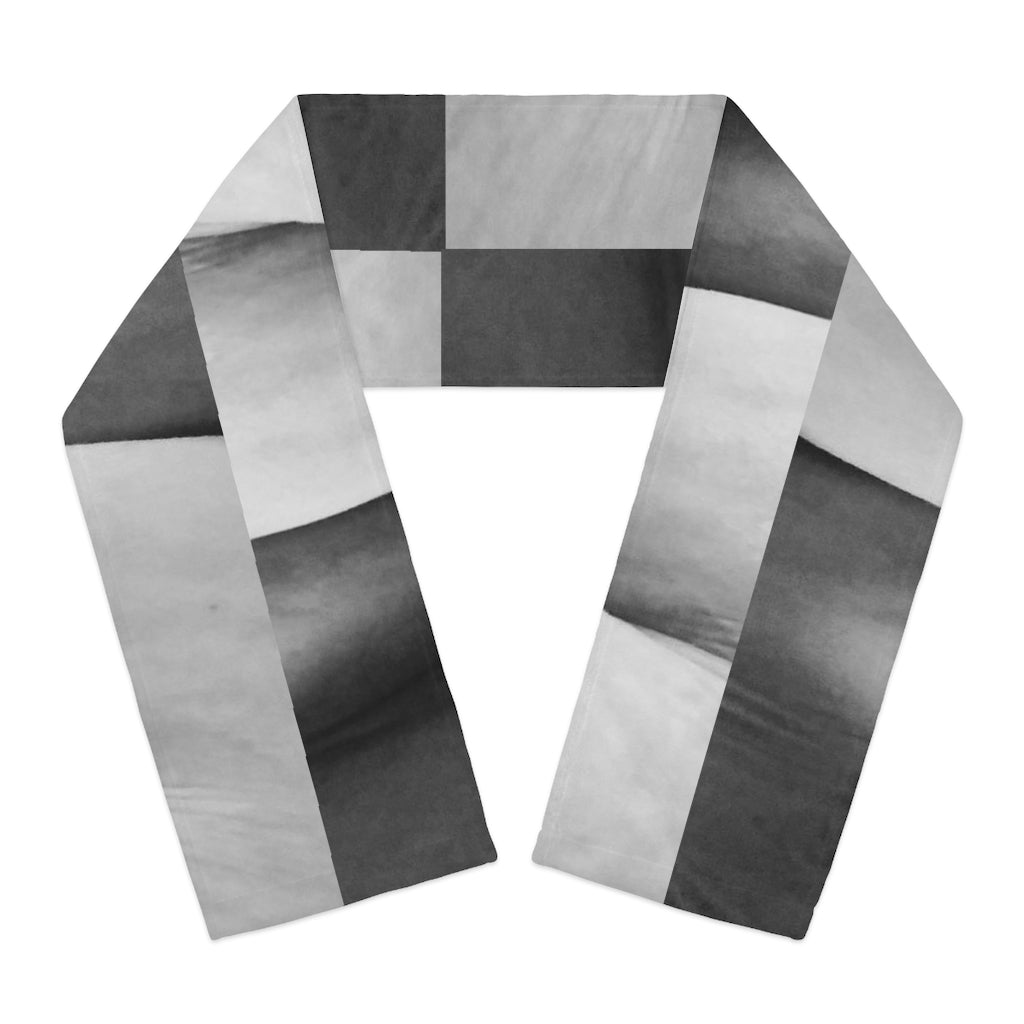 This scarf is made of love handles, printed in oppositional gray arrangements like a checkerboard, to grace your neck with the fleshy shine of imperfection. Roll with the rolls and celebrate the constant shifts that a body can make.