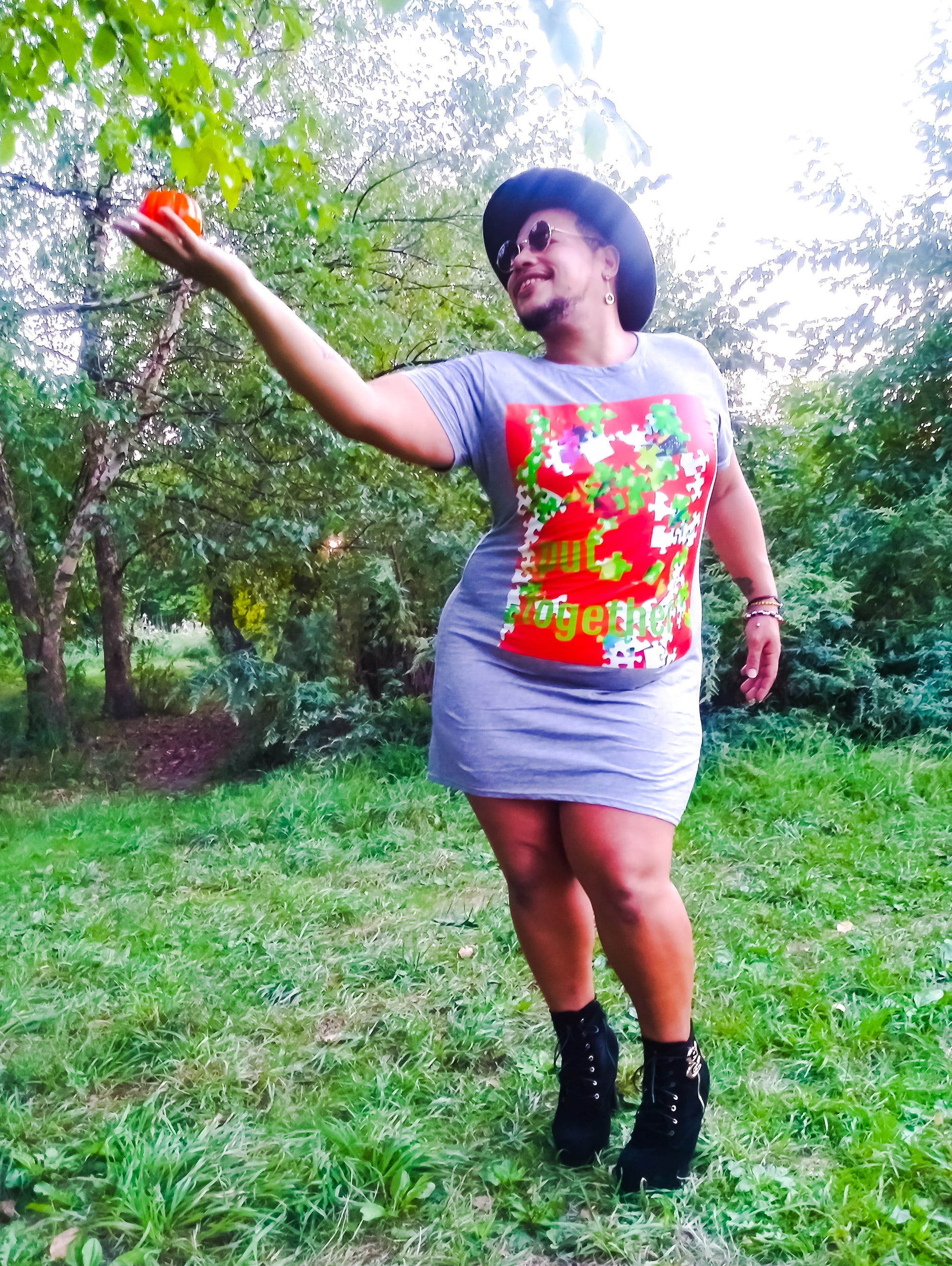 Anne is a Brooklyn born and bred mother of 1 human and 1 sweet dog named Luna. This is her first modeling session, which took place in her yard amongst the savage weeds which gave her the strength to allow her own inner light to shine.